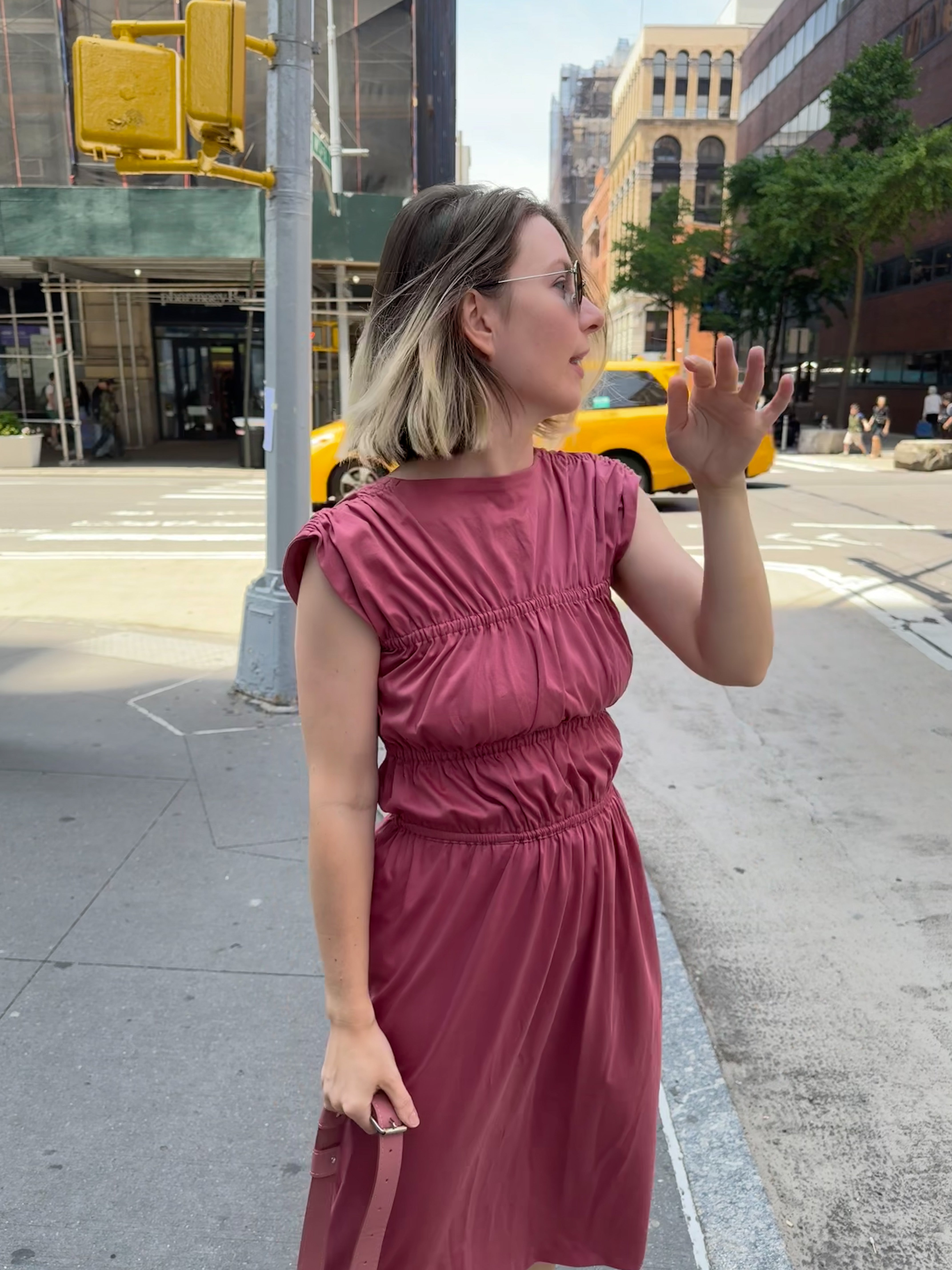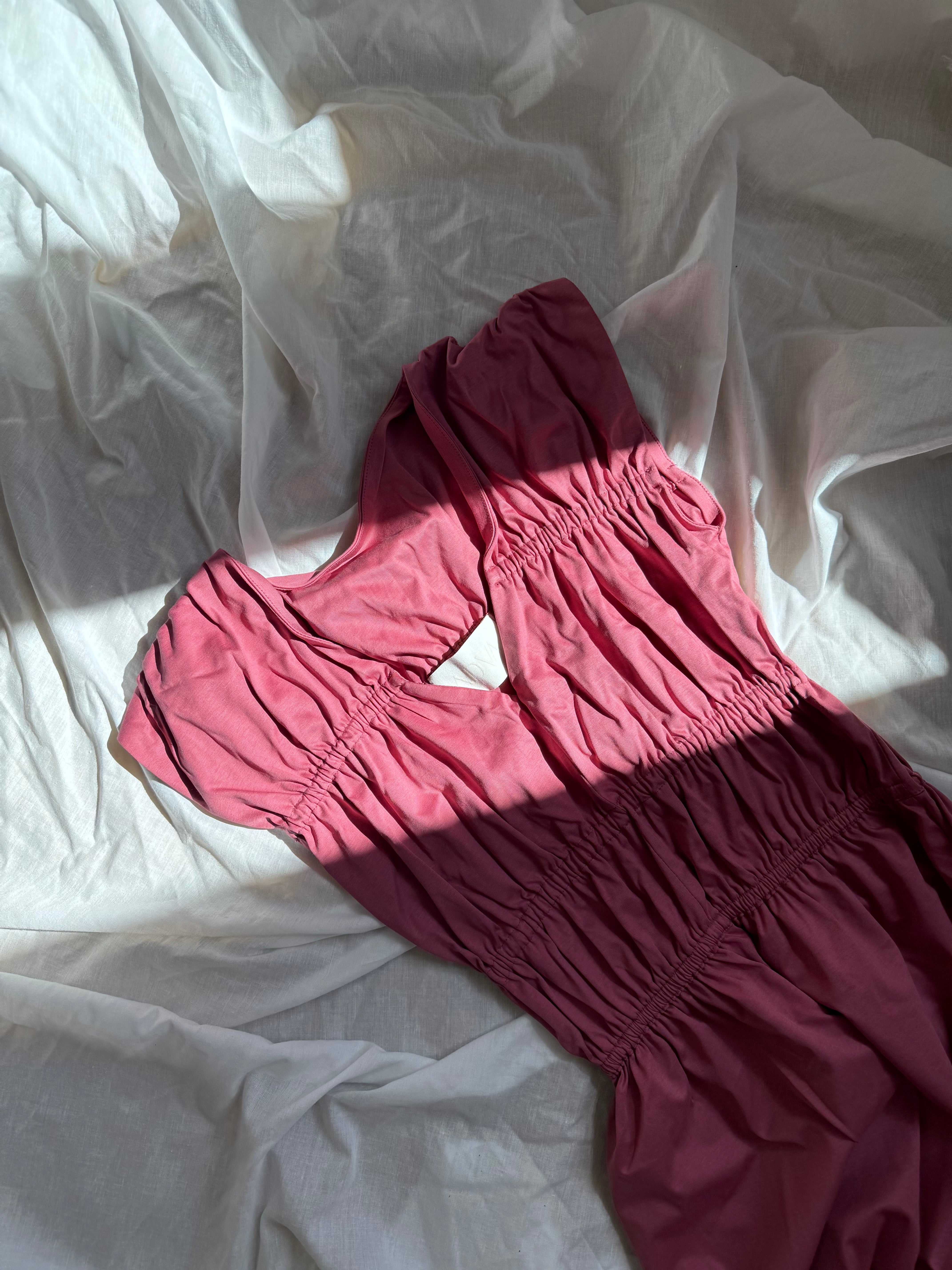Women's sleeveless midi dress with creative pleating in limited pink colour